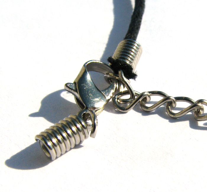 - one 16 inch waxed cotton cord with lobster claw clasp (adjustable to 18 inches),