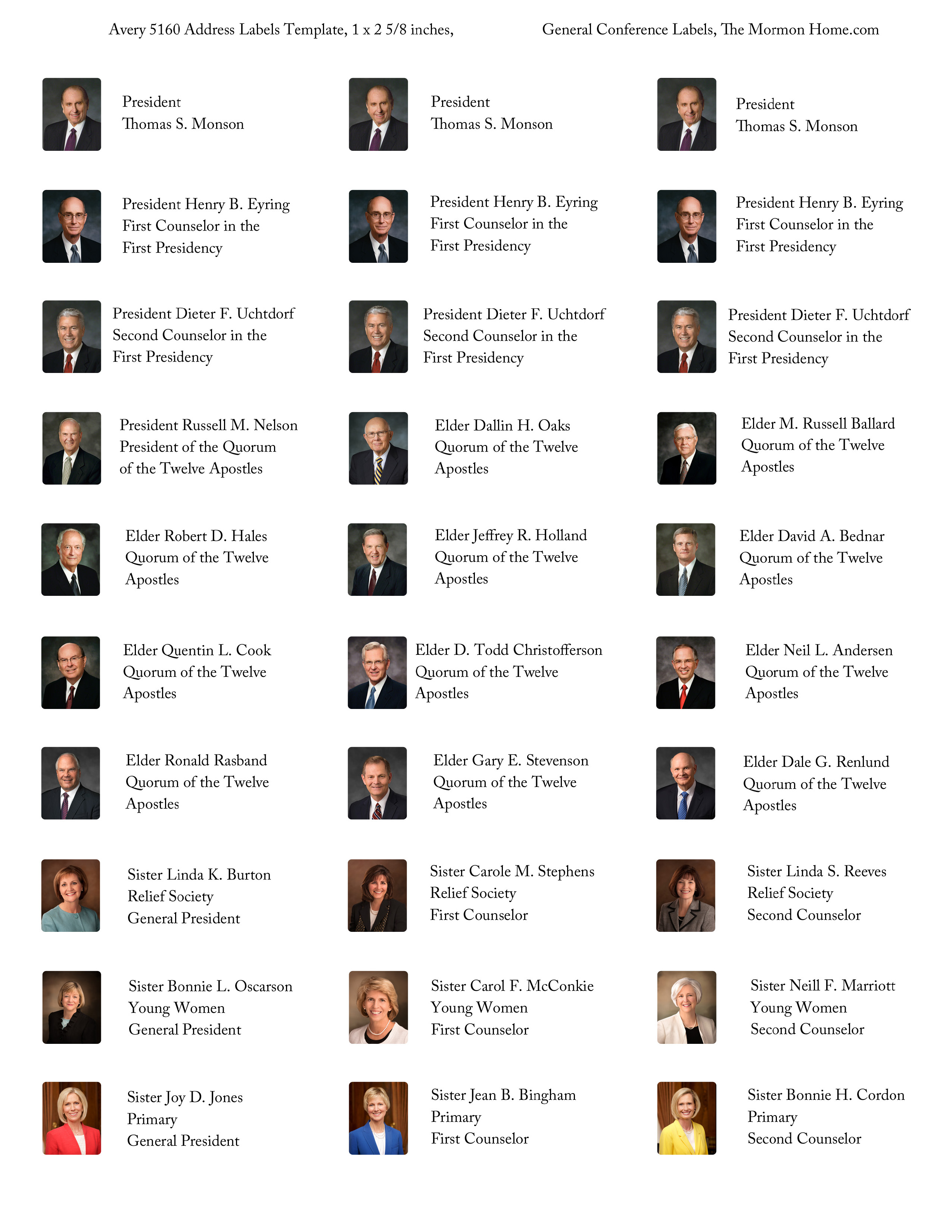 Need updated labels for conference? You can print these on Avery 5160 address labels (or compatible). They are super fun for kids to use as stickers. Click the PDF below. They include the new Primary Presidency. I also have a page with general topics which might also be helpful in note taking.