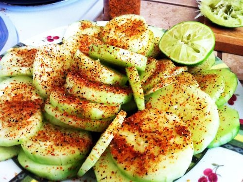 Pepinos con chile y limon (cucumbers with lime and chili powder)
