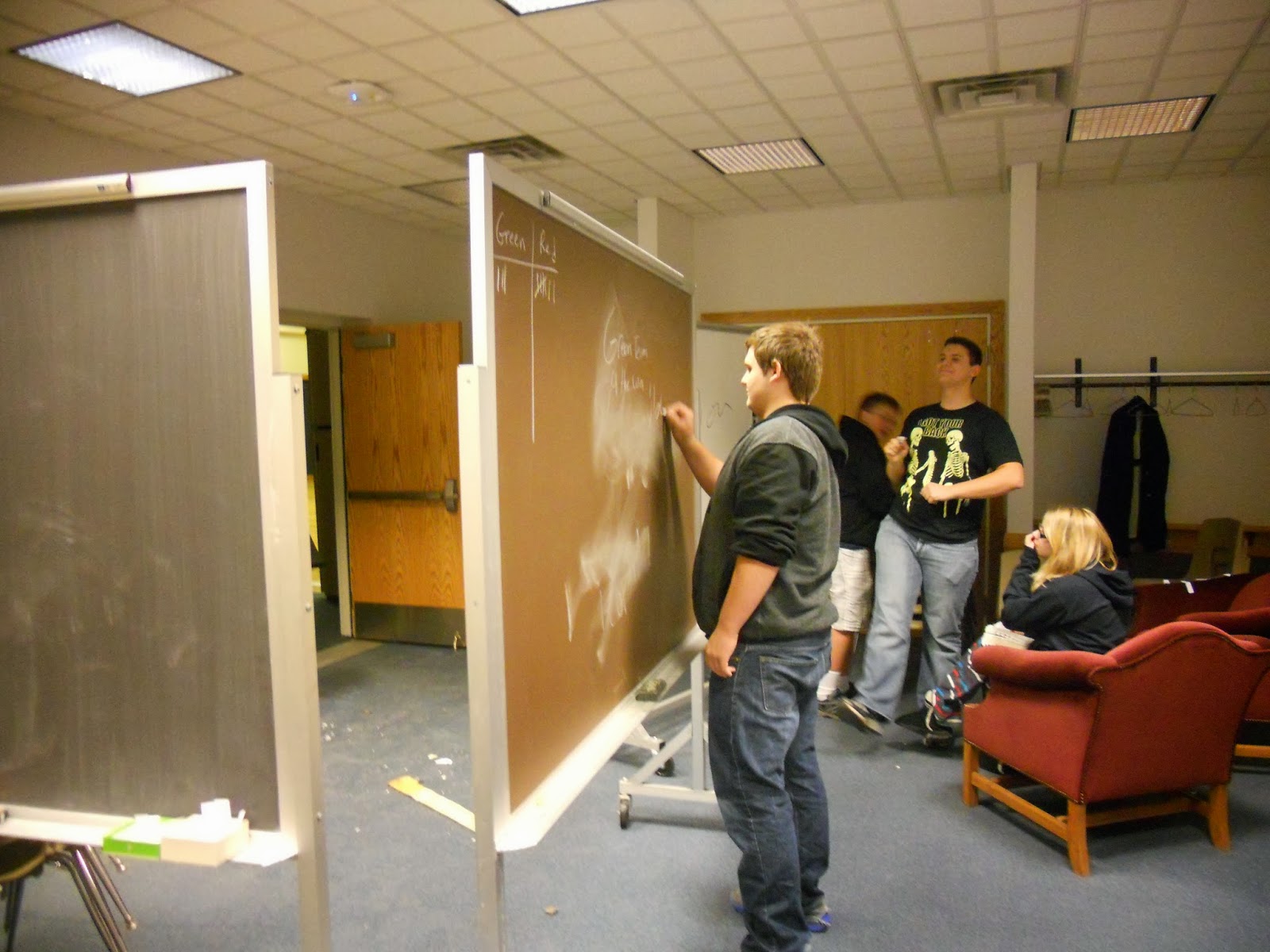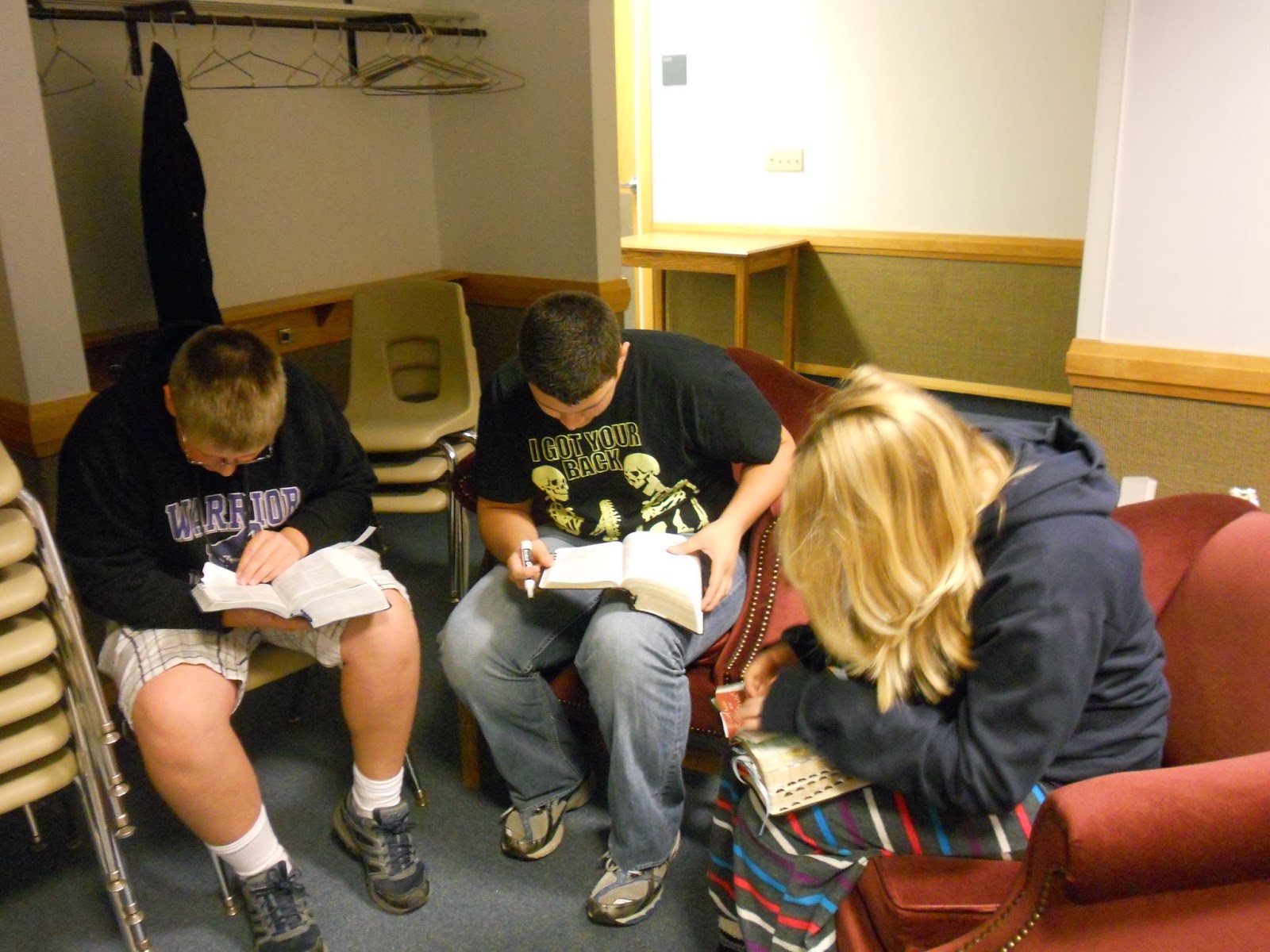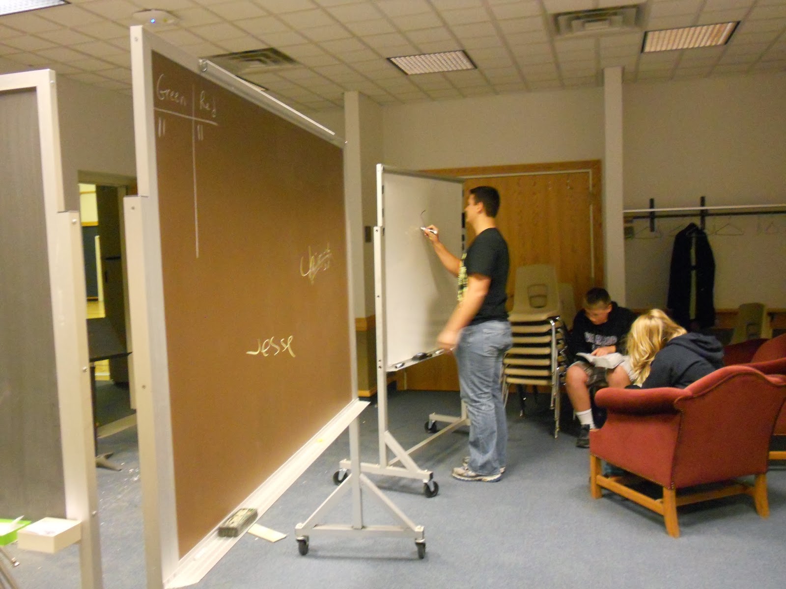 I like the teams to work together. So they had to read the scripture, find the answer and since I don’t have a small white board for each of them, we used the large portable boards. This method works best for my class. It keeps them all involved and less likely to chat and get off topic.They took turns on who ran to the board with the correct answer.1 point given for correct answer. If the team was wrong, the other team had a chance to steal the point by giving the correct answer.There were a couple of bonus questions that were worth 3 points each.