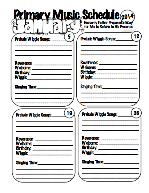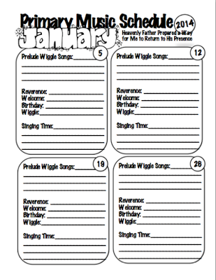 This is the same schedule format that I used as Primary chorister. It may or may not work for you, depending on how your Presidency likes to run things.
