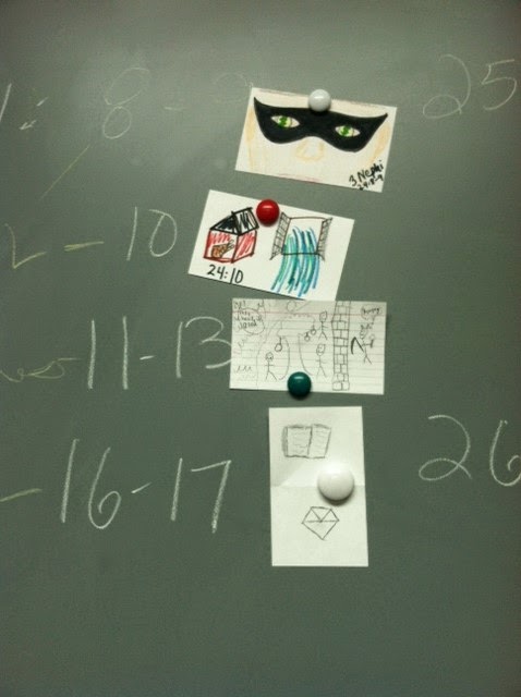 I handed out an index card to each of them and had them pick a verse, draw the hieroglyphic and then explain to the class what it meant.