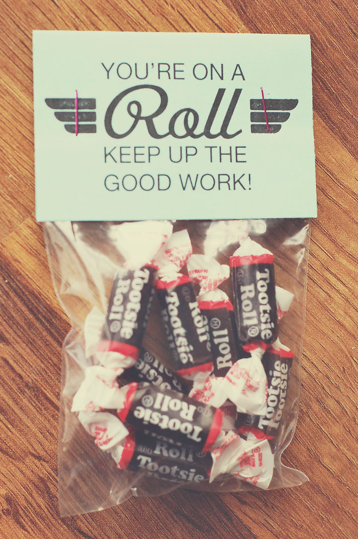 I made some of these Tootsie Roll treat bags to go in our Personal Progress Punch Board. I put a handful of midgees into a 3 x 4″ plastic bag, then folded the printable in half and stapled to the top of the bag. You can use any color paper for the printable to go with any of the values. Download it here!
