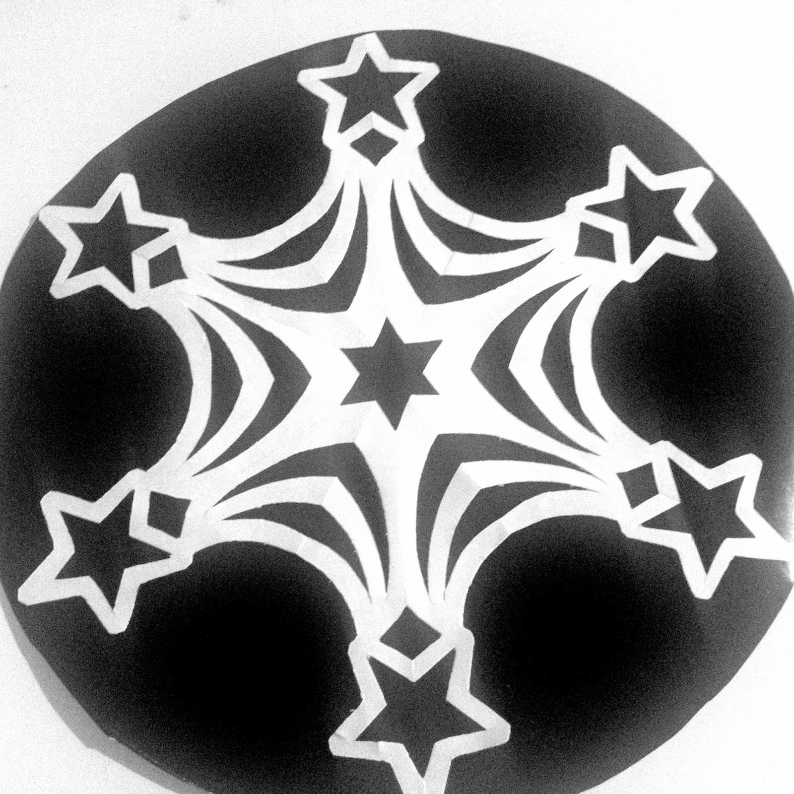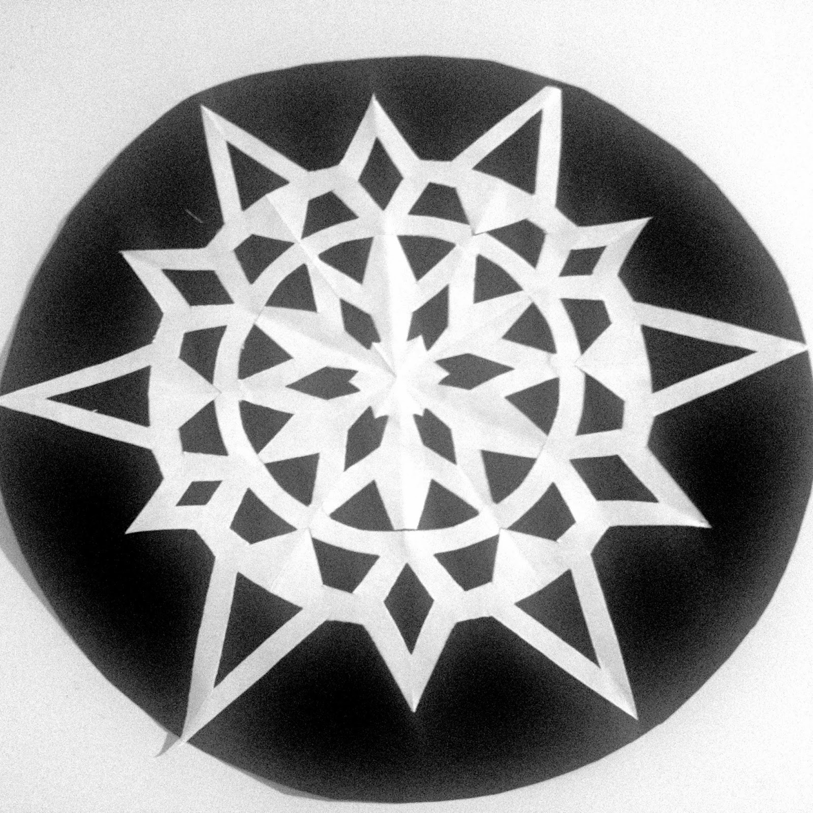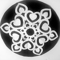 Carefully cut out the shaded areas. Unfold the snowflakes and either laminate them or glue them to dark paper for stability. Write the name and page number of the song you’ve chosen on the back.