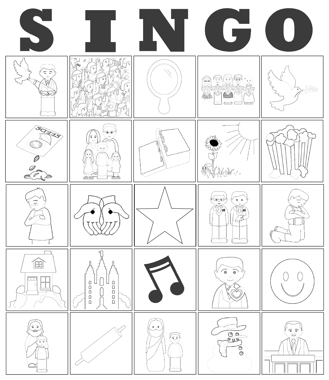 6. If you have a large primary, or if you don’t have much time, you can have each class create a SINGO card. Or, you can create one card for the entire primary and play together!