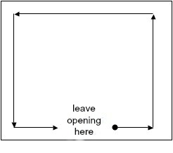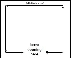 This diagram shows the basic concept of how to sew a burp rap (or blanket). In the diagram, the 1/2 yard of fabric is folded over (with the fold at the top of the square). Make sure they turn their fabric inside out before they sew (so, right-sides together). I had them pin a few places on each side. I also had them mark the opening with 2 pins close to each other so they wouldn’t accidentally sew over it (this doesn’t have to be a certain place or even measured, just big enough for their hand to fit in. The opening is there so that when the sewing is done, they can reach inside the blanket and pull it right-side-out). So basically they just need to sew straight lines all the way around (except for where the opening is).