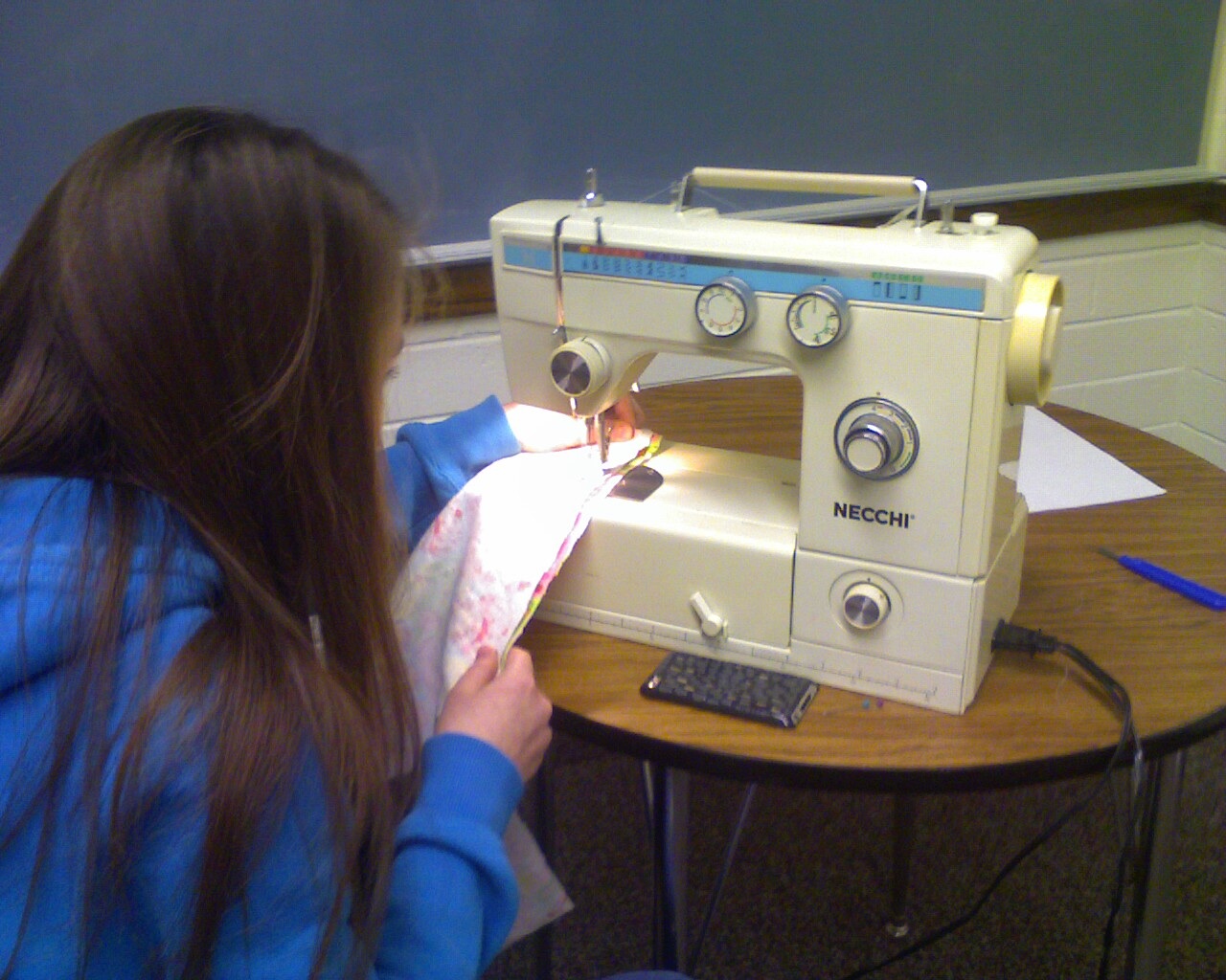 Some of the girls in our class had a little experience in sewing, but not much. They were all a little reluctant to use the sewing machine, but I gave them lots of encouragement and was right there to help if something went wrong. If possible, it would be good to have several leaders available to help the girls (and several machines going!).