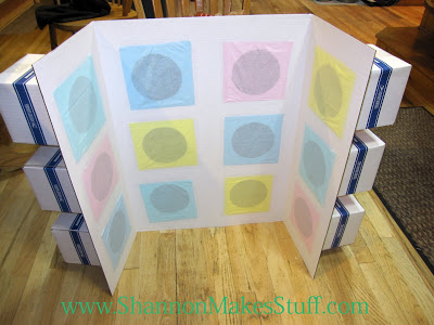 This one used bags behind each hole.LuAnne saw the Punch-a-Box on pinterest and decided to use it for her sharing time. Here is what LuAnne shared: “I will have 10 questions for my game. The 10 questions will go into 10 bowls (she used bowls for her punch-a-box). I am writing the word P-R-I-E-S-T-H-O-O-D onto the paper covering the bowls, one letter per bowl. Then one at a time, a child will come up and get to put on a child size boxing glove (how cute! Love it). Then they will punch into the tissue paper taped over the bowl and pull out their question and read it out loud. Then the children are given the chance to answer, or get help from the rest of the primary, until we all have a great understanding of what the Priesthood is and the blessings that come from the Priesthood.”