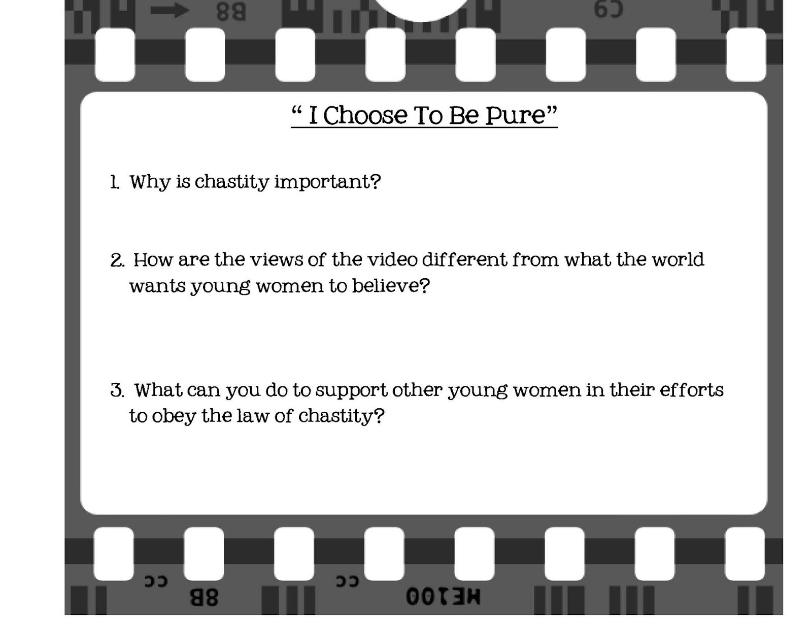 I encourage you to prayerfully consider and ponder the points from this lesson that are age-appropriate and towards the needs of your Young Women. This is definitely a “loaded” question and very important question to cover with the youth of today. I feel Satan and his followers are working double time to get to the youth of today, and unfortunately it’s through this avenue of Chastity that many of our youth take off their armor of God.