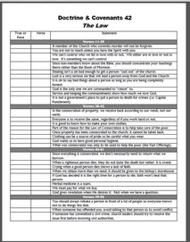 Here is a worksheet to help you and your students through Doctrine & Covenants 42. The second page is the key. Perhaps have them work through it in pairs and then go over it as a class. If you are short on time, give them the verse numbers before each grouping. When going over it as a class, make sure you emphasis the big take away points you want your students to walk away with.