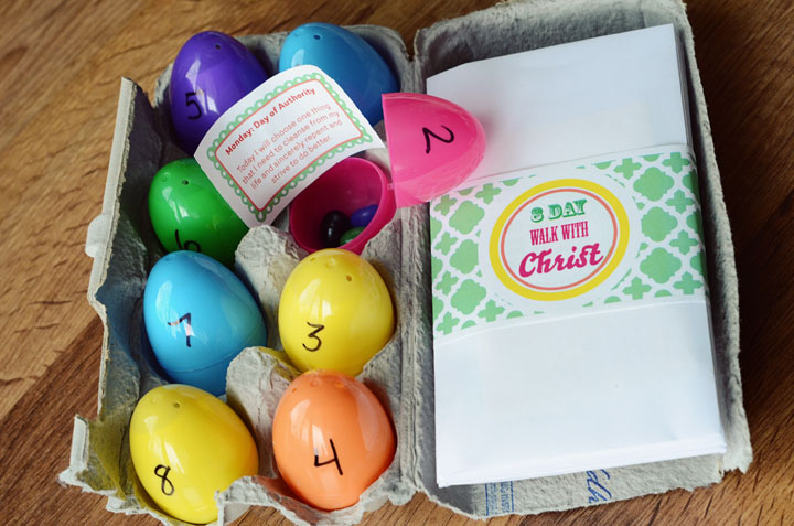I put together an 8-day Easter “Walk with Christ” to share with my young women. I’ve seen several versions of this, and I simply adapted those to make my own. Each day you open an envelope and an egg and are led through the last week of Jesus Christ’s life.
