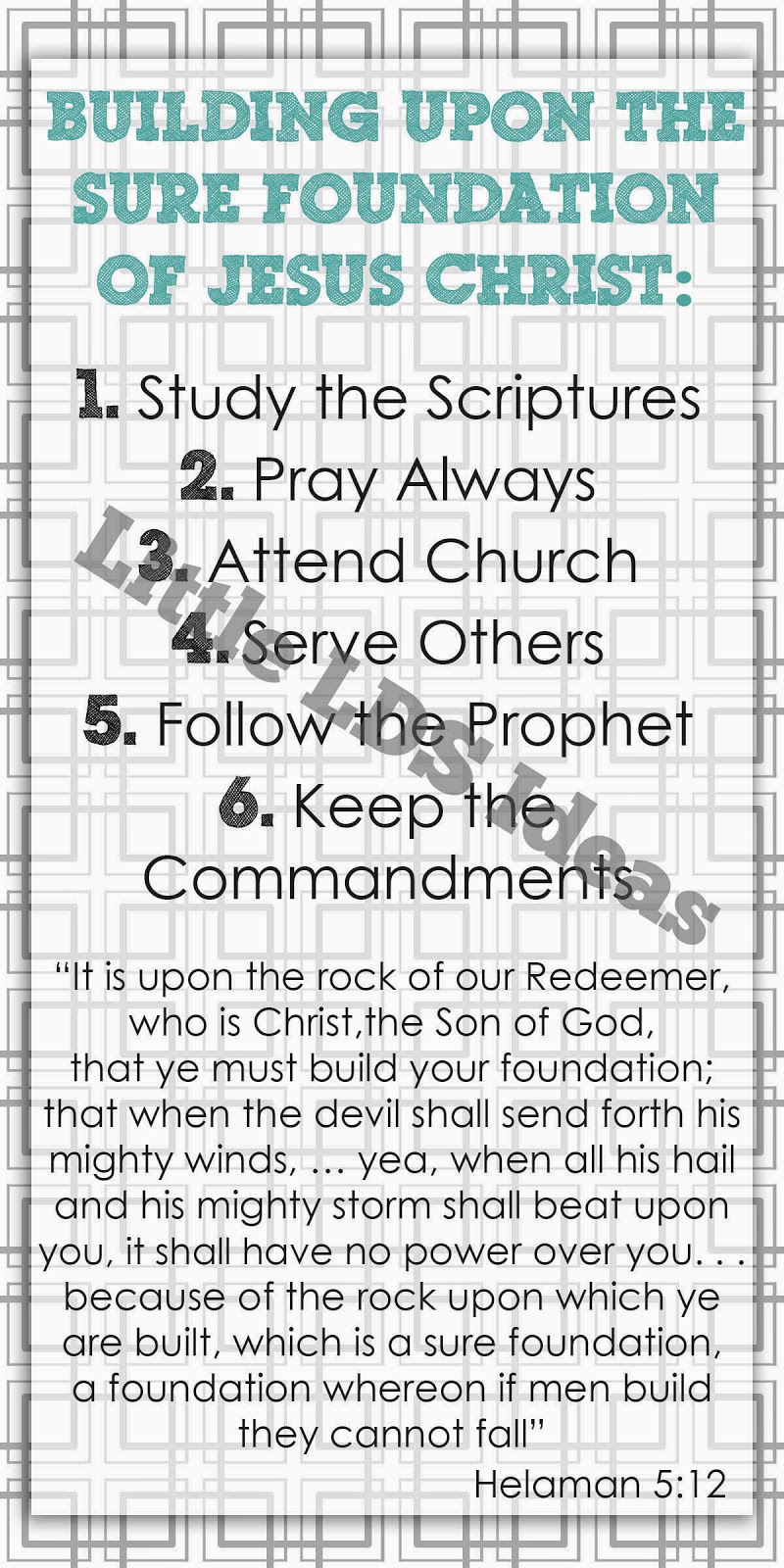HandoutTo help you and your family remember what they can do to build upon the sure foundation of Jesus Christ, I have created these great little bookmark handouts.