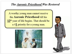 Good scripture mastery mnemonics have some common characteristics. There is something in the key words, that could spark and idea or image that helps you remember the reference. For instance, with “The Aaronic Priesthood Was Restored –D&C 13:1” I have the mnemonic “A worthy young man cannot receive the Aaronic Priesthood till his 13th year of life begins. That should be a #1 priority for a young man.” So in a student’s mind, when he hears “Aaronic Priesthood, he immediately can associate it with 13:1