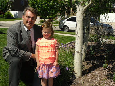 Here’s my hubs with our cute little Meg. He’s donated LOTS OF TIES over the years….and he’s been a bishop too!