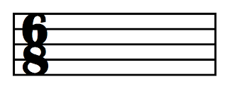 Faster six-beat songs can be conducted with the same movements of two-beat songs. Divide the beats as shown: