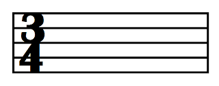 Songs with three beats per measure will have a time signature like this one: