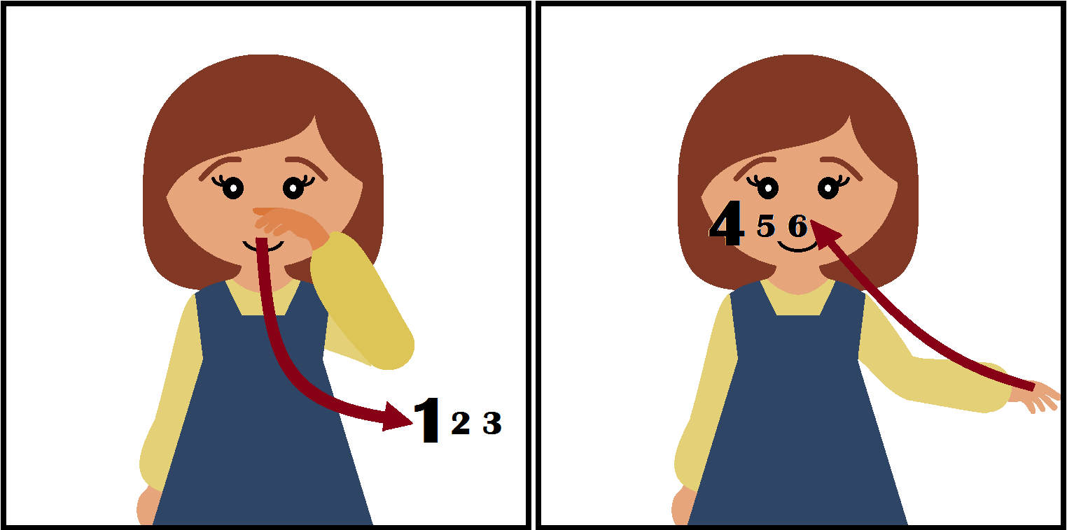 Slower six-beat songs are directed almost exactly like a 4-beat signature, but with small bumps in the “across” and “out” movements. As you sing 1, 2, 3, 4, 5, 6, think “down, across, across, out, out, up, down, across, across, out, out, up.”