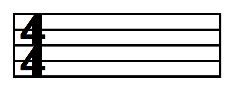 A four-beat time signature will look like this: