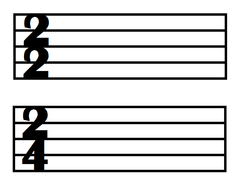 Next, you need to understand a time signature. The time signature is found at the beginning of each song. It looks like a fraction. In order to direct music, you will only need to understand the top number. It shows how many beats are in each measure. The two time signatures below, for example, each have two beats per measure.