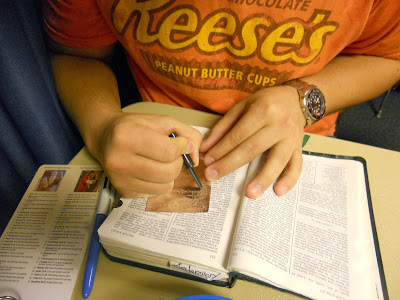 Each person was to take a toothpick and write their testimony or something they learned from the lesson on their plates.