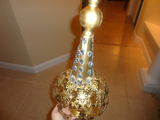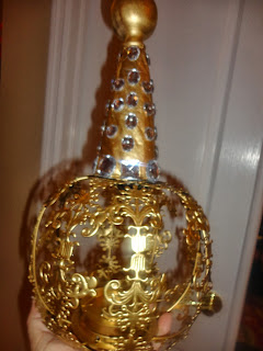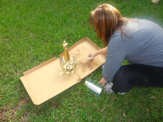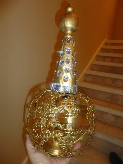 The styrofoam cone covered with newspaper. I know that if I had applied spray paint directly to the cone, it would have disintegrated (voice of experience after my son spent days carving a pyramid out of styrofoam only to have it dissolve right before his eyes as he sprayed spray paint on it)