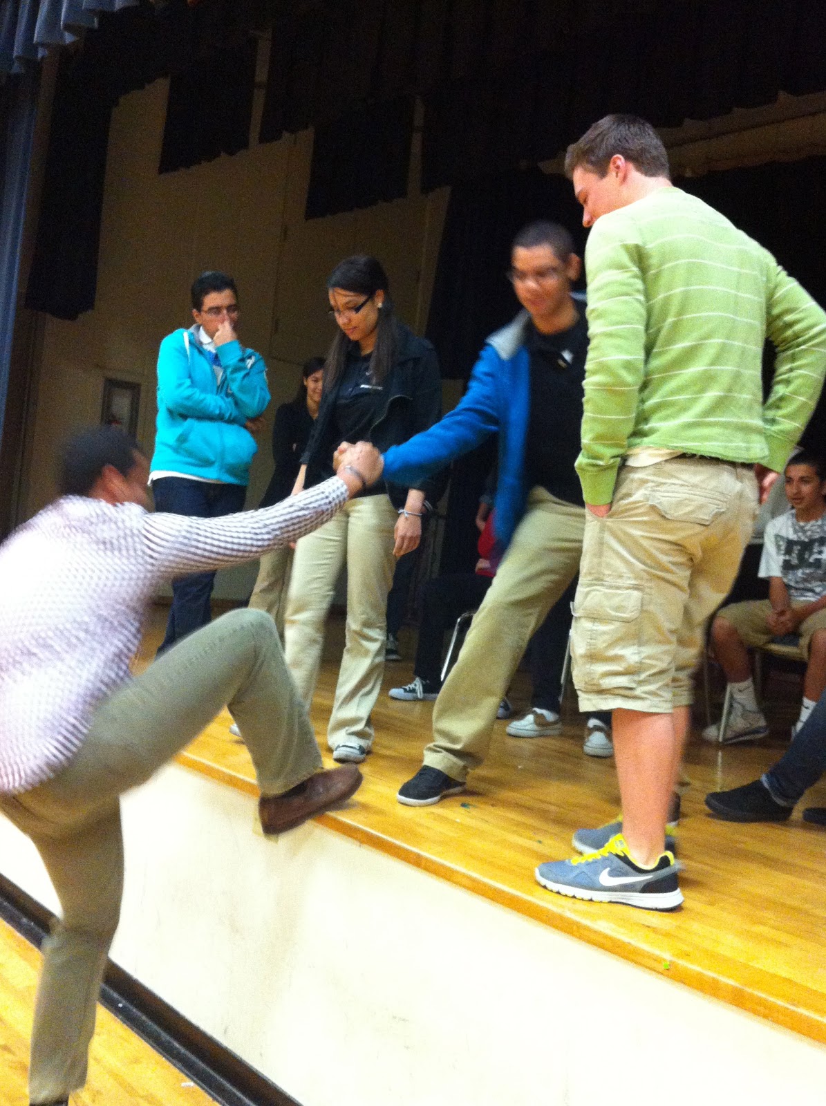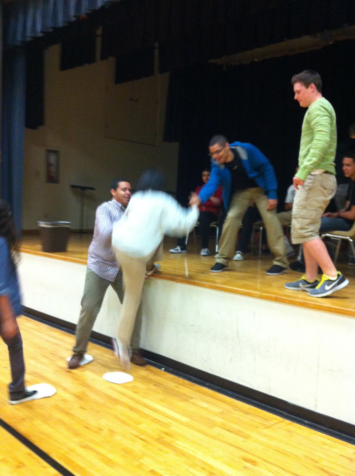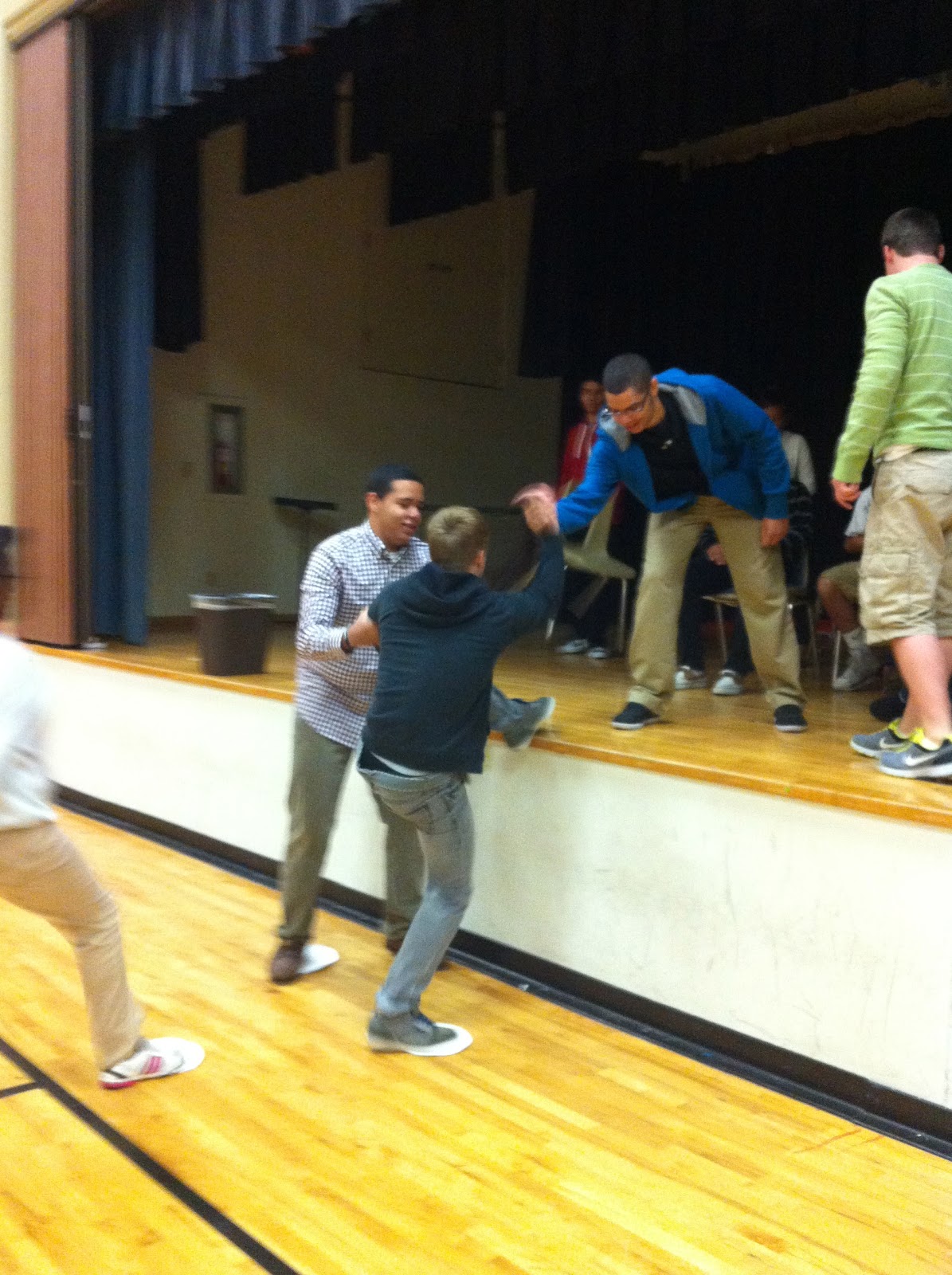 My friend, Pam, at Seminary Moments gave me this fabulous idea. It was based on the paper plate activity I used at the beginning of the year. She adapted it in a completely new way. We discussed James and John healing the lame man and “lifting him to higher ground”, literally and figuratively. The students had to follow a path and to get to higher ground (the stage) one rule was that they could not get to the higher ground (stage) on their own, they could not do it alone, they needed help.