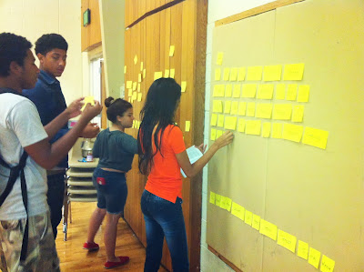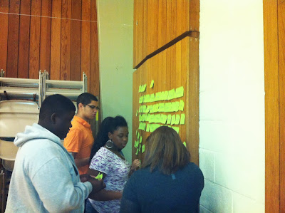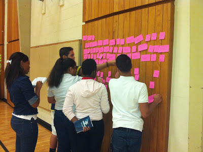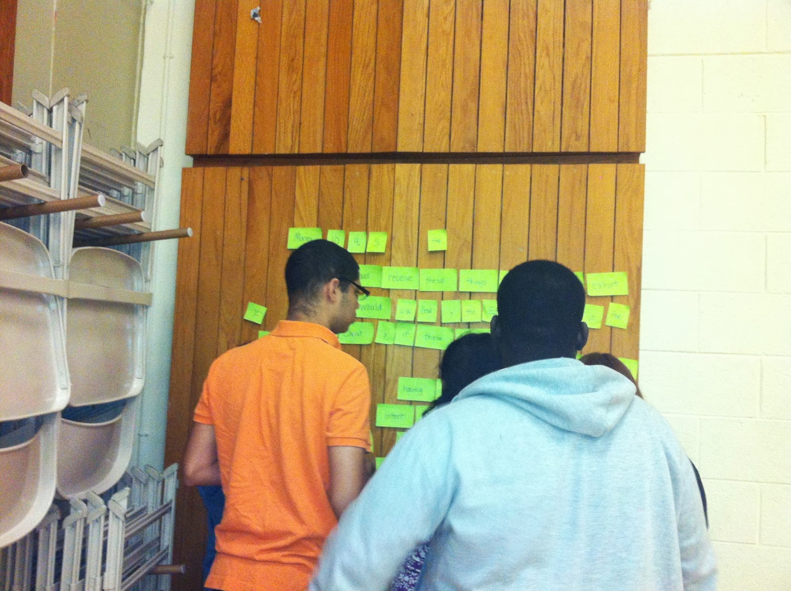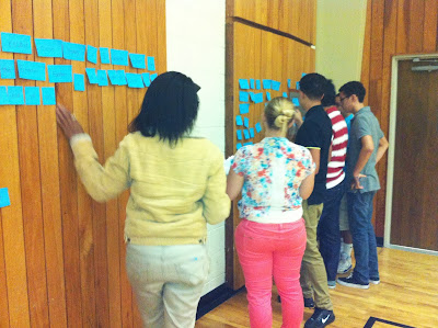 Post-it notes are this teacher’s best friend. Every word, comma, semi-colon, period, and number is on a separate post-it note. I bought the 3×5 size at the dollar store over the summer so that large words would not be crowded on a square post-it. For smaller words and punctuation, I cut them in half.I place the Post-it notes with all over the wall in random order and they have to place them in order on the wall next to them.Two other ideas using this same concept:1)When I do this again, I will hand each team a Zip-loc bag with the Post-it notes mixed up in random order and placed inside the bag. 2)I have also done this in “Scavenger Hunt” style where I tell the students that there are 45 (or whatever number there are) Post-it notes hidden around the building. They have to find them and bring them back to the Cultural Hall where they must put them in order to determine what the scripture is and that all the words and punctuation marks are in the correct place. (This works better with shorter scriptures as it can take too long if there are a lot of words to find and put together)