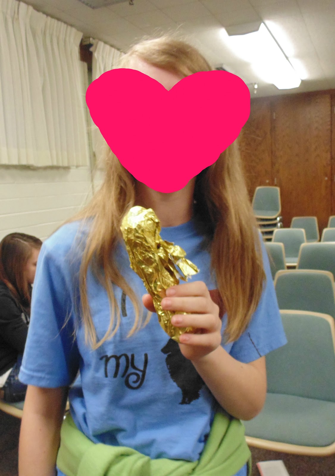 UPDATE: I found some gold-foil paper (that is normally used to wrap cake-decorating boards) to use instead of regular silver foil and spray paint. It is made by Wilton and is available online and at larger stores that carry cake supplies (like maybe Michaels? JoAnns? Our local Walmart carries Wilton brand cake supplies, but only has the silver fanci-foil). Here is an online source: http://www.wilton.com/store/site/product.cfm?sku=pg_fancifoilwrap. I also gave the girls regular silver foil to use as a base and give it more form.