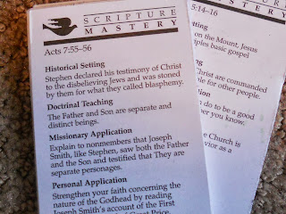Many of my students are memorizing the Scripture Mastery verses over the summer. We were so excited to have the new cards early but they are just not as user friendly as they have been in the past. Photo from Seminary Moments Blog