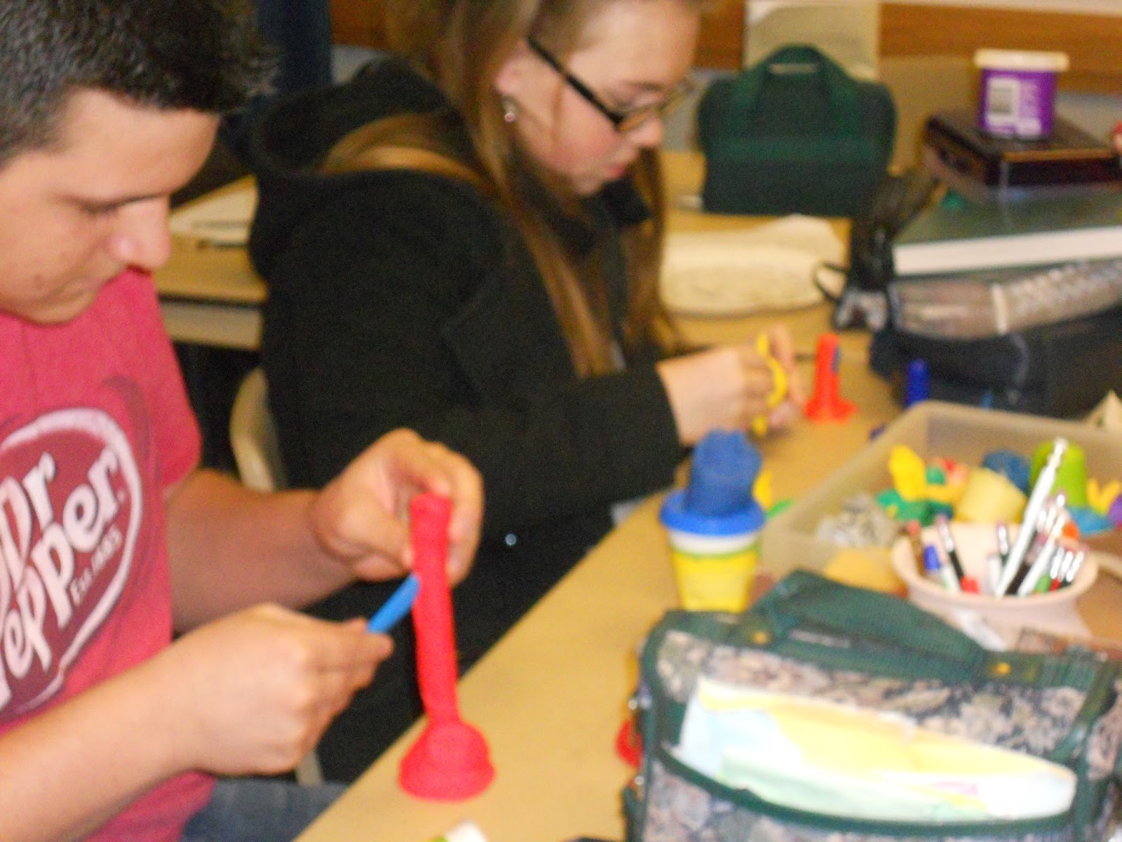 They busily set about making an idol. (I brought all my play-doh tools/toys and let them create for about 10 min.) Then they were to place the idols around the room,