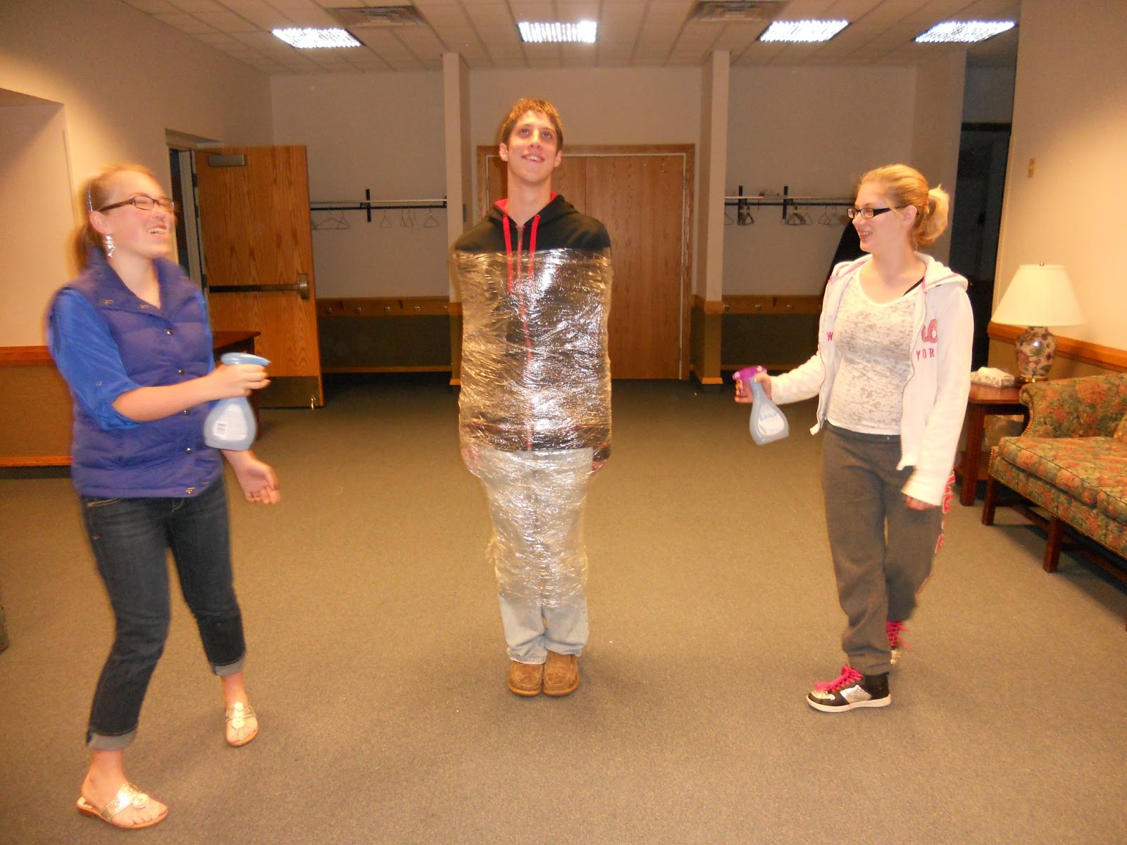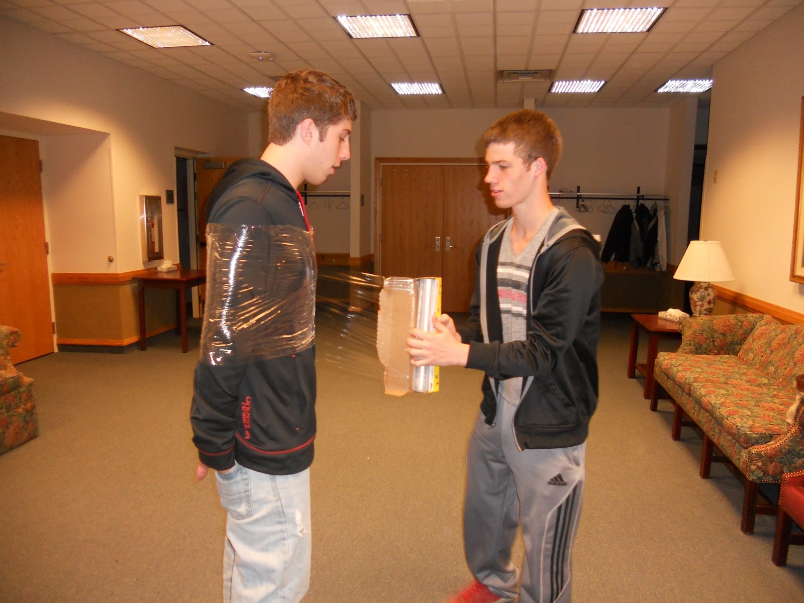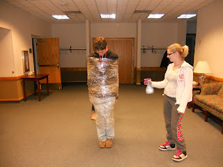 For our activity today I had one of the young men wrapped in plastic wrap: