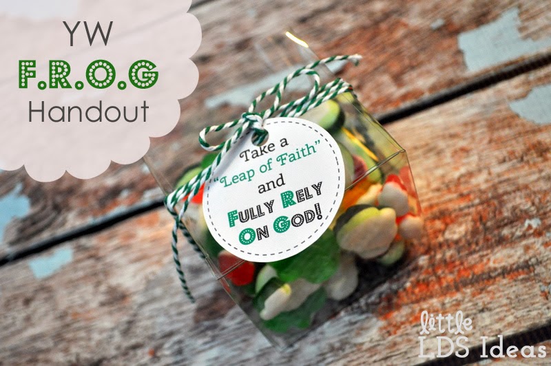 Do you need a cute ‘Faith’ treat to give to your YW? Just click the link below to print out my FROG tags.And if you want to use the clear boxes like I did, then take a look HERE.