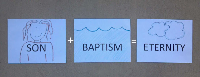 “Aren’t rainbows beautiful? I sure think so! Did you know that you can have something very beautiful -even more beautiful than a rainbow?! Yes, you can! Here, let me show you. To get something even more beautiful than a rainbow you need sun…. OH! but not this kind of sun! Nope. You need THIS kind of Son! (flip over sun/Son). Who knows who this is? Yes, that’s right! It’s Jesus! He is Heavenly Father’s Son! And let’s see…. you also need water. But not rain! Nope. (flip over rain/baptism). You need the waters of Baptism to have something very beautiful. And when you have these things you will get something very beautiful… (flip over last one)… Yes! You can have eternal life! Eternal life and the chance to live with Heavenly Father again is a very beautiful gift that we are given. We can be baptized and we can keep Heavenly Father’s commandments so that we can live with him again.”