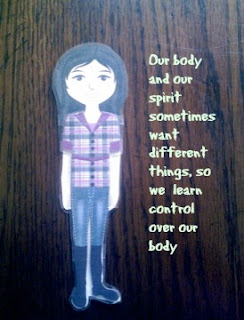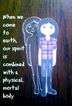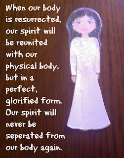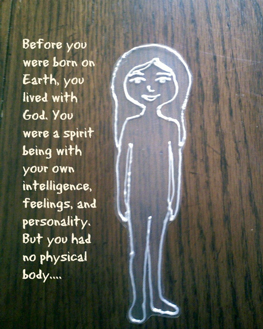 My previous visual aids have been misplaces, but that was ok, because I wanted to make something specific for my upcoming YW Sunday lesson on the Resurrection. I chose the image of an adult woman because we were adults as spirits before we were born and will be adults when we are resurrected. If you want, you can show additional steps (like a baby, child, etc), but I was focusing on the basic elements.