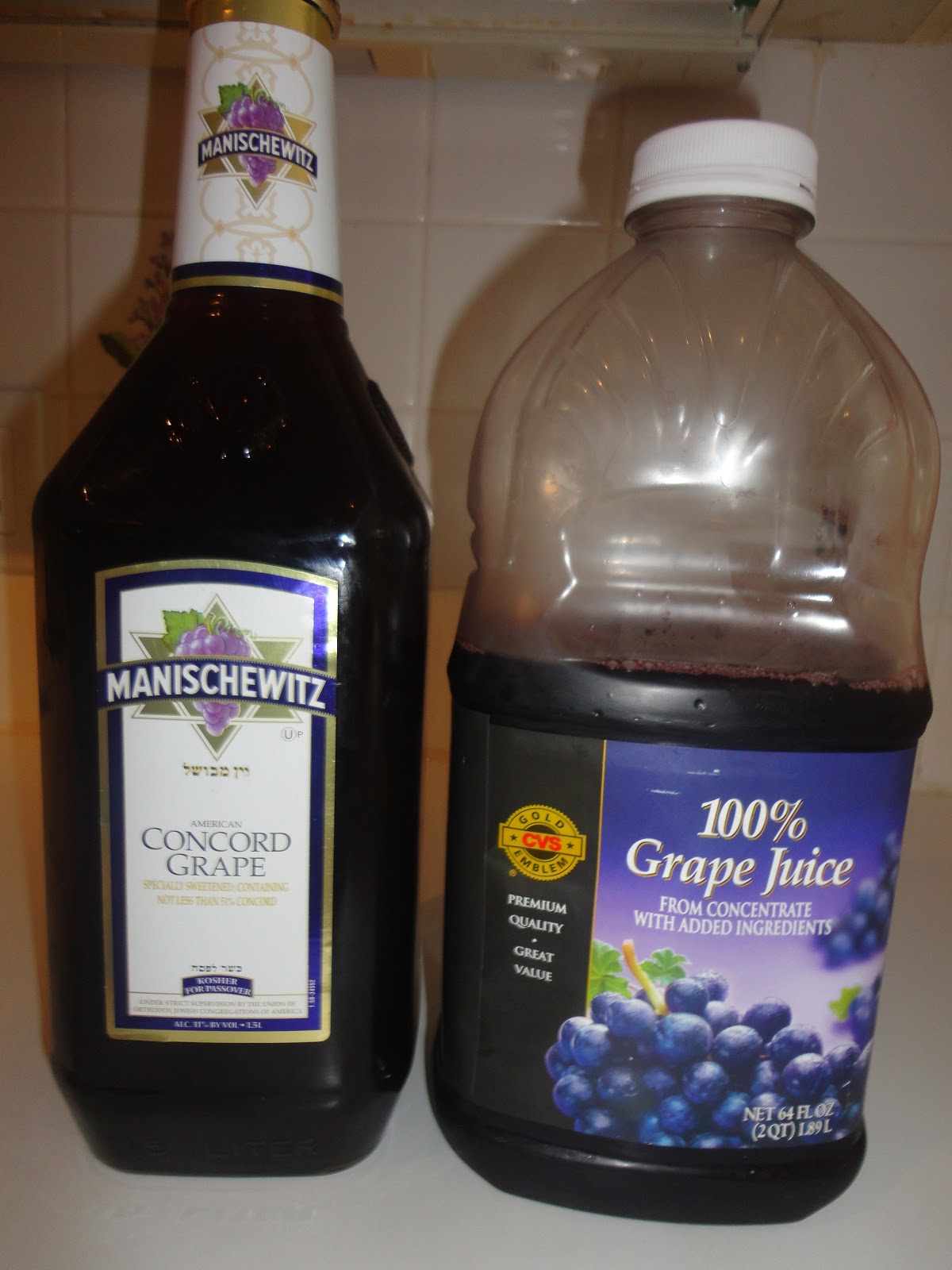 Make sure you use Grape JUICE, not Grape WINE. We used the Grape juice on the right.