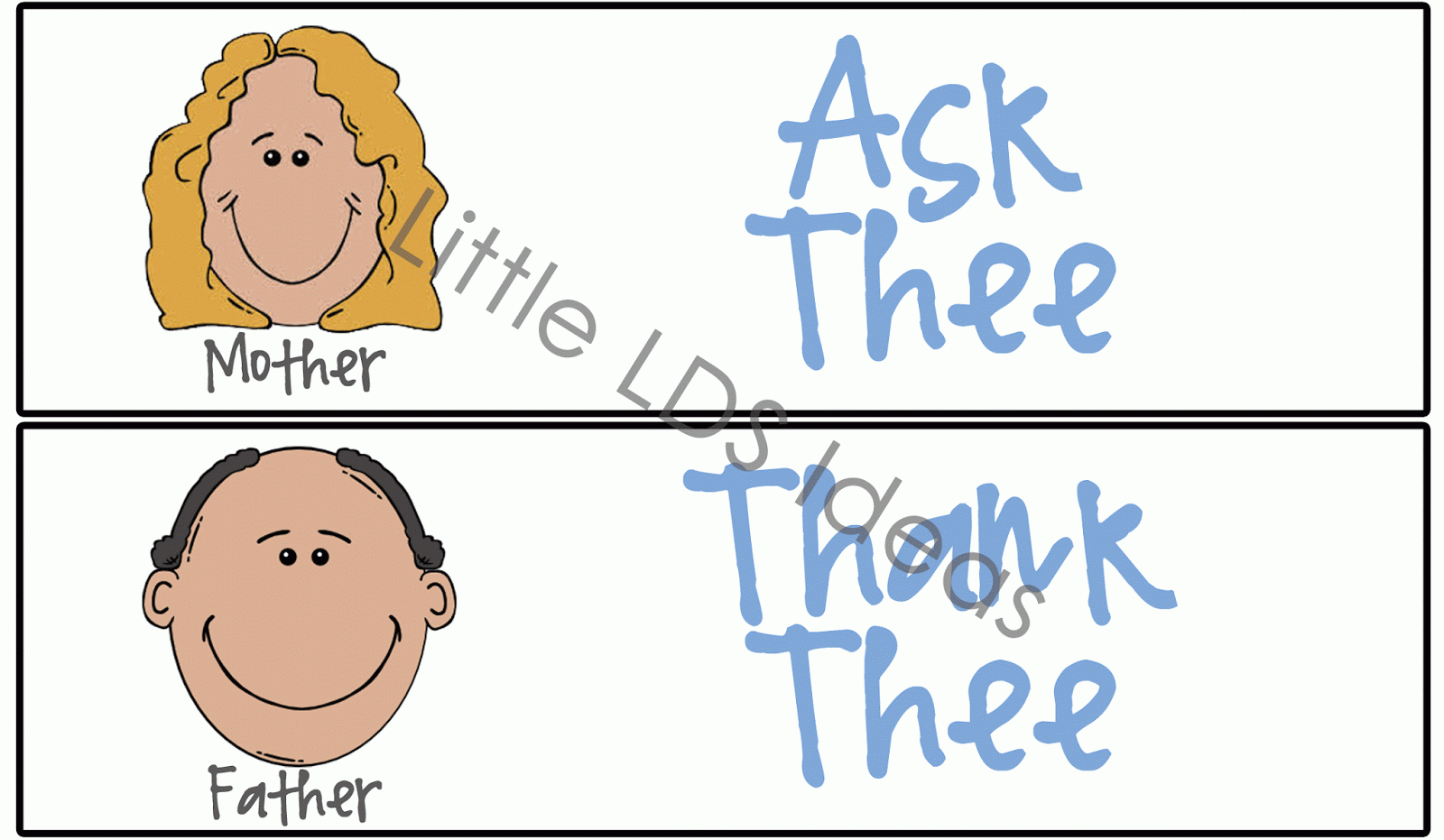 Prayer Punch:I thought it would be fun to create a Punch-A-Box and call it ‘Prayer Punch’. Inside each of your cups place a picture of a family member {ex: Mom, Father, Brother, Sister, Grandmother, etc.} with either ‘Ask Thee’ or ‘Thank Thee’ written on the back. Invite a child up to the front and have them ‘Punch’ and then have them retrieve the picture from the cup. Have them think of something that particular person could pray for.Example: Let’s say inside the cup that was punched was a picture of a ‘Mother’ and ‘Thank Thee’ was written on the picture.The child could say that a Mother could Thank Heavenly Father for her family.If the picture had ‘Ask Thee’ the child could say that a Mother might ‘ask’ Heavenly Father to bless a sick family member, or to watch over her family.Family Prayer Link: I really like the idea of demonstrating how families are linked together. So for this idea you could create a ‘Family’ paper chain.On rectangle pieces of paper have a name or picture of a family member. On each piece of paper you could also write “Ask Thee” or “Thank Thee”.Place the papers inside of a ‘Punch-A-Box’, inside of balloons, underneath primary chairs or have them hidden around the room.Once a piece of the chain is found have the child think of something that that particular family member could pray for.Once he/she gives an answer attach it to the rest of your family paper chain.Once all pieces have been found attach each end to each other. Show the chain to the children and emphasize how families are held together, blessed, and strengthened through family prayer.