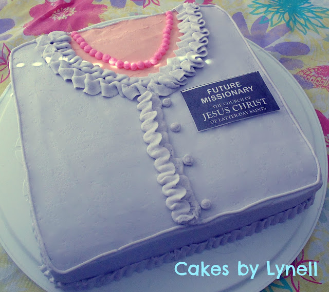 PS- To make the cake, I used a square cake pan and frosted it with light purple buttercream. I added “skin” color for the neck and then buttercream piping & other decorations. I printed out the “future missionary” nametag and covered it (front and back) with clear contact paper (like lamenating, but cheaper) to keep it from getting soggy & weird when it touched the frosting. I just stuck the nametag to the cake with more light purple frosting. I got the clipart for the nametag here (free) and I used it for a non-commercial purpose, of course.