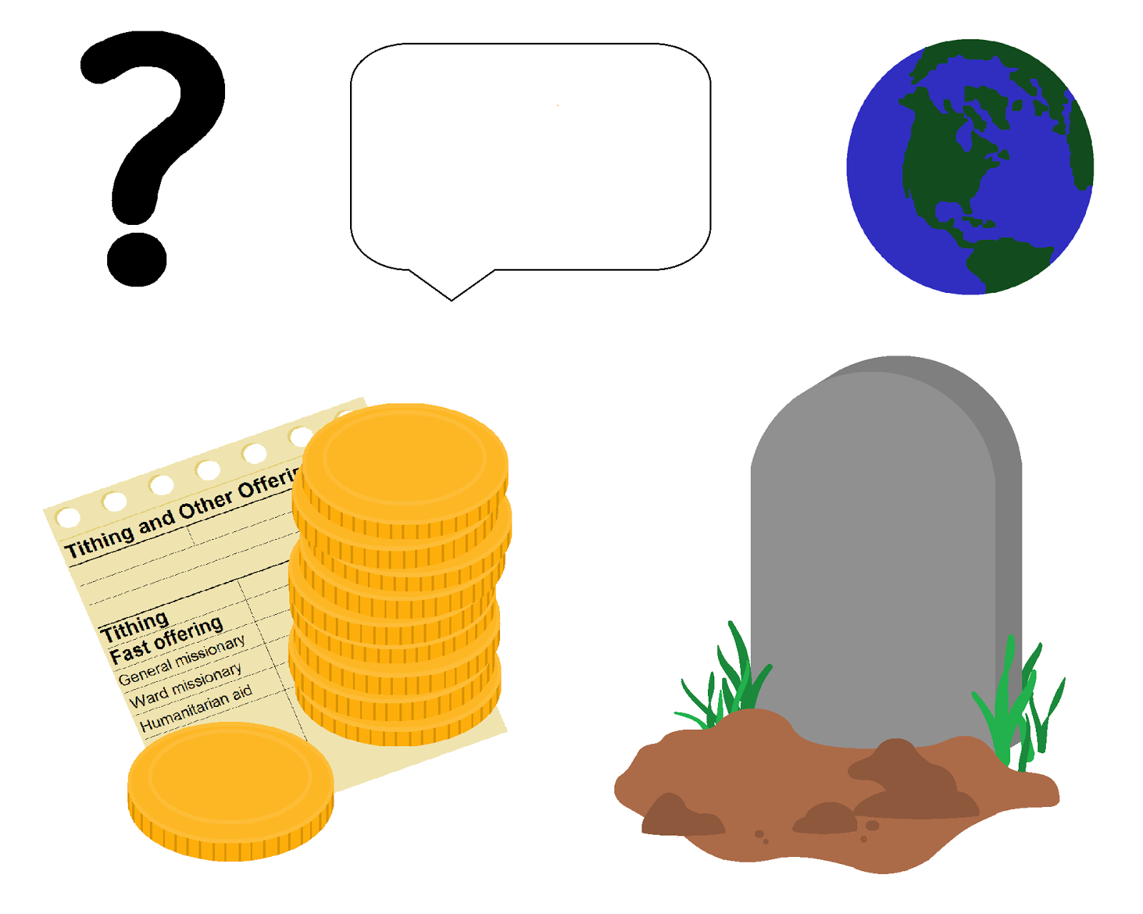 Print the document below. Post the question drawings on the board in the correct order. Place each of the pictures depicting Christ into a large envelope maked “To: The World. From: Heavenly Father.”