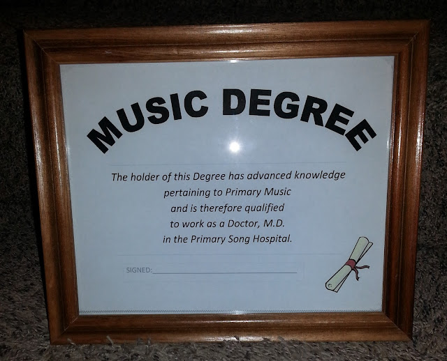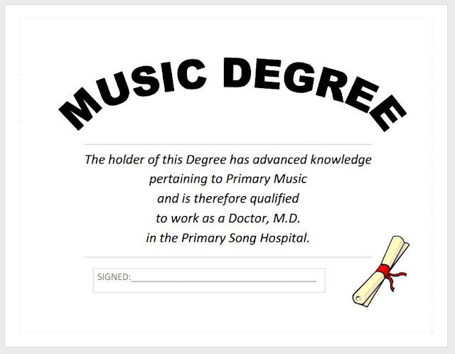 EXPLAIN:Fall is coming and it’s almost cold and flu season, and unfortunately, some of our songs have gotten sick! So sick that we’re going to have to send an Ambulance out to bring them to our Primary Song Hospital. This is Dr. Smith. He’s a Doctor. See his Doctorate Degree? [show a degree with M.D. …which stands for music degree ;)].