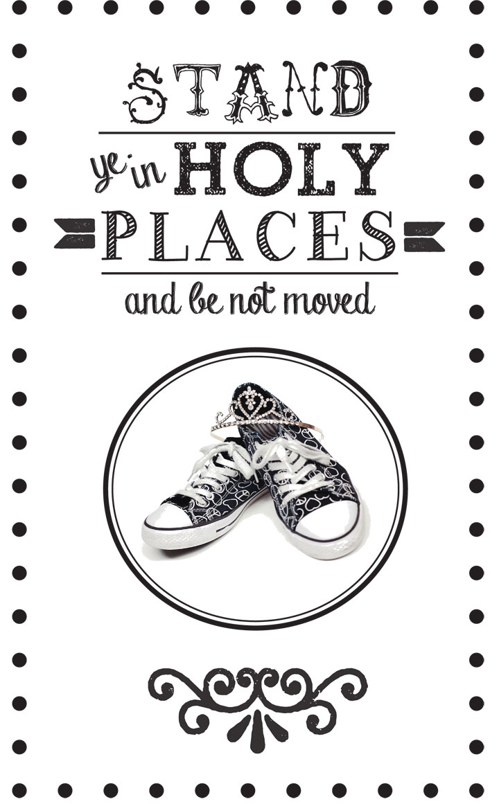 I’ve got a couple more goodies for anyone working on a Stand in Holy Places New Beginnings program. Above is the cover we are using for our program. Below are the food labels we will have at our refreshment table. They are formatted so you can print on carstock, cut vertically down the paper, then fold in half so it will stand on its own.