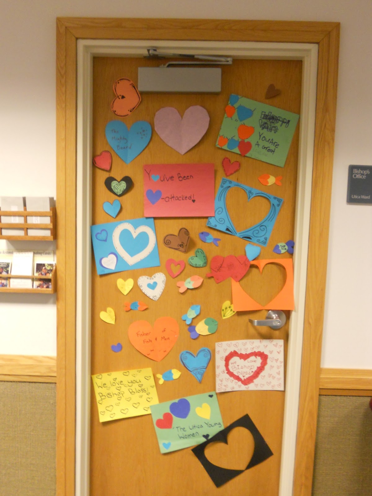 Our Bishop is much loved by the youth in our ward, his door was heart attacked on Wednesday night during mutual!