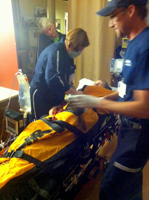 The crew arrived and got me all fixed up.I made my husband take a picture. :) We said our goodbyes to the wonderful nurses and my doctor and then headed for the plane.