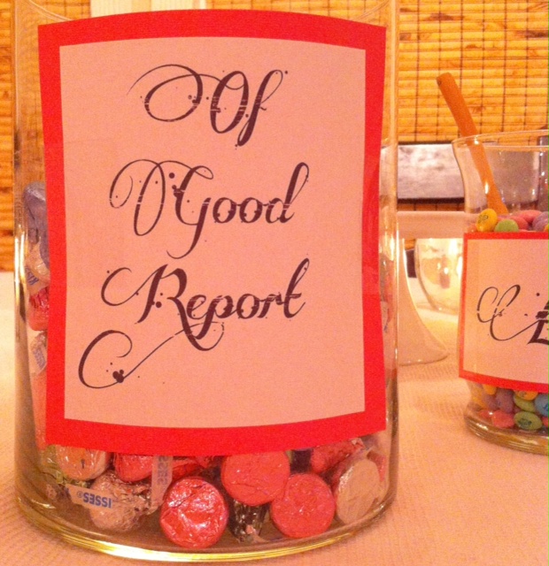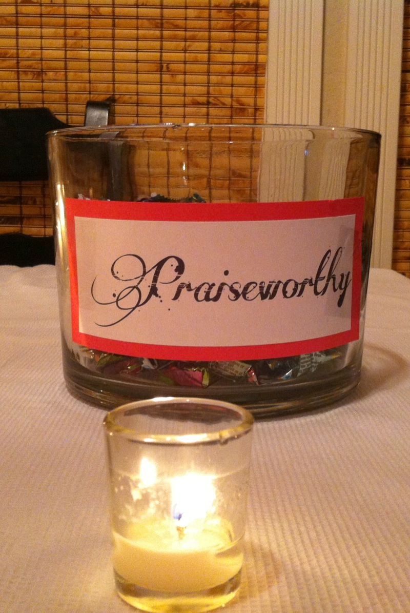 We finished the evening off by watching the video and choosing some treats from our candy bar-I labeled several different treats with “praiseworthy”, “of good report”, “virtuous”, etc.
