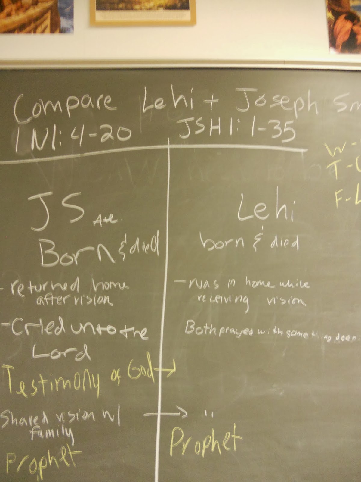 Next we compared Lehi to Joseph Smith using the scriptures: 1 Nephi 1: 4-20 and JSH 1: 1-35