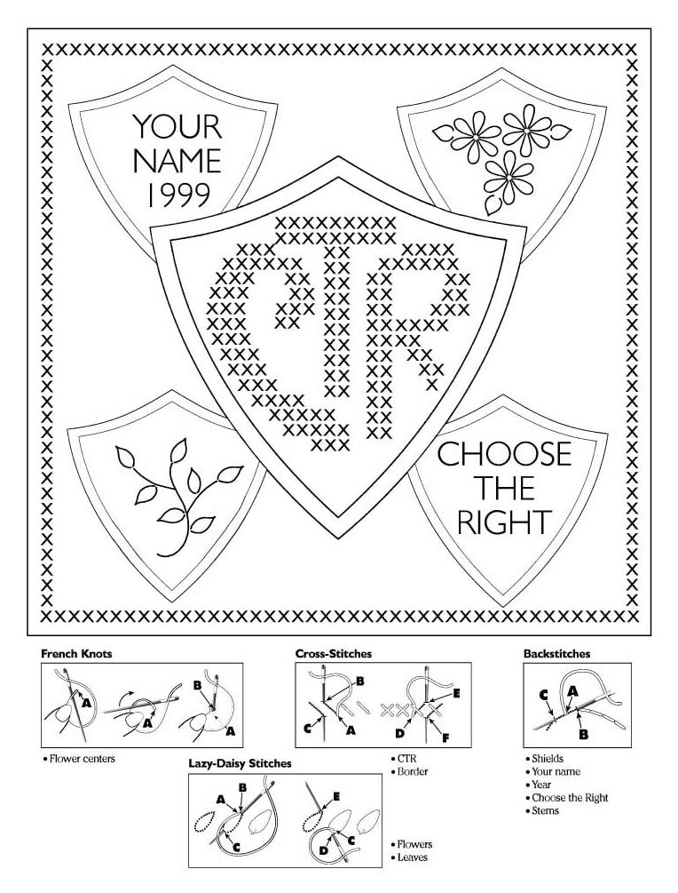 Download the attached pattern from the July 1999 issue of The Friend to cross stitch your own CTR pattern.