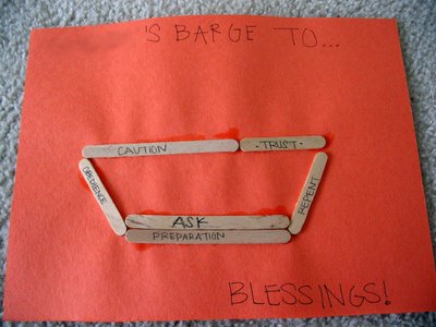 Then I suggested they were ready to build their own spiritual barges. We had initially started off class today by looking at a newspaper report of the very sad bombing in Iraq yesterday. We talked living in the last days and about how going through life will require complete trust in the Lord, and that as we build our own spiritual barges to travel to our personal promised lands, we will be found capable and eternally successful of receiving the Lord’s blessings – because of our willing obedience and hearkening ear.
