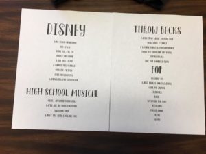 - “If your youth are anything like ours, they have playlists on their phones or iPods. And someone is bound to have a portable speaker if you do not want to hook straight into the church system. I personally have several playlists- through iTunes, Spotify- which also has the EFY music for this year, Mormon channel, pandora, I heart radio, and a few others. Newer Disney ‘rock’ songs can be iffy… so listen carefully.” (Liz)