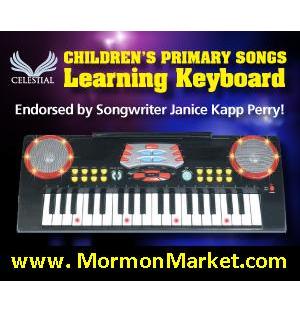 We bought a Children’s Primary Songs Learning Keyboard from www.MormonMarket.com and our children have begun to play the songs to accompany the rest of the family when we sing to open and close FHE. We have even used it for one of our kids to showcase ‘their’ new song during FHE which always puts a smile on their faces. It really helps with keeping the children reverent on Sunday while they practice playing the keyboard. I’ve been really pleased to see (with the two older kids) their skill levels improve while playing the full sized piano.