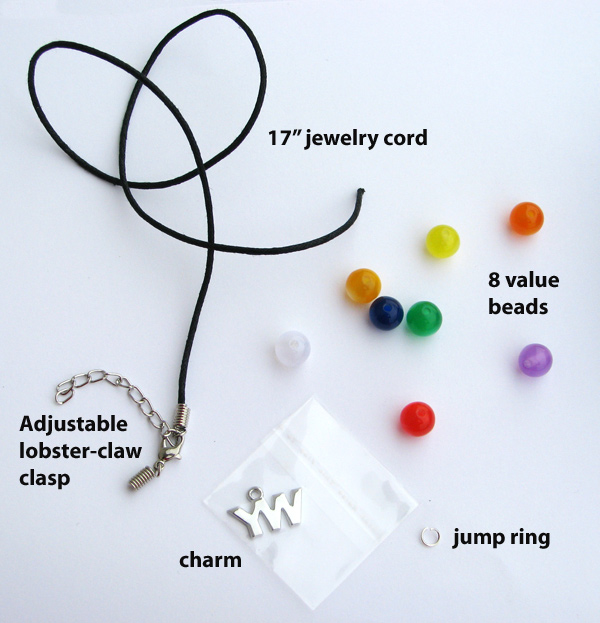 Charms only in this order. Get our beads in all value colors and jewelry cord to make your own inexpensive girls camp craft.