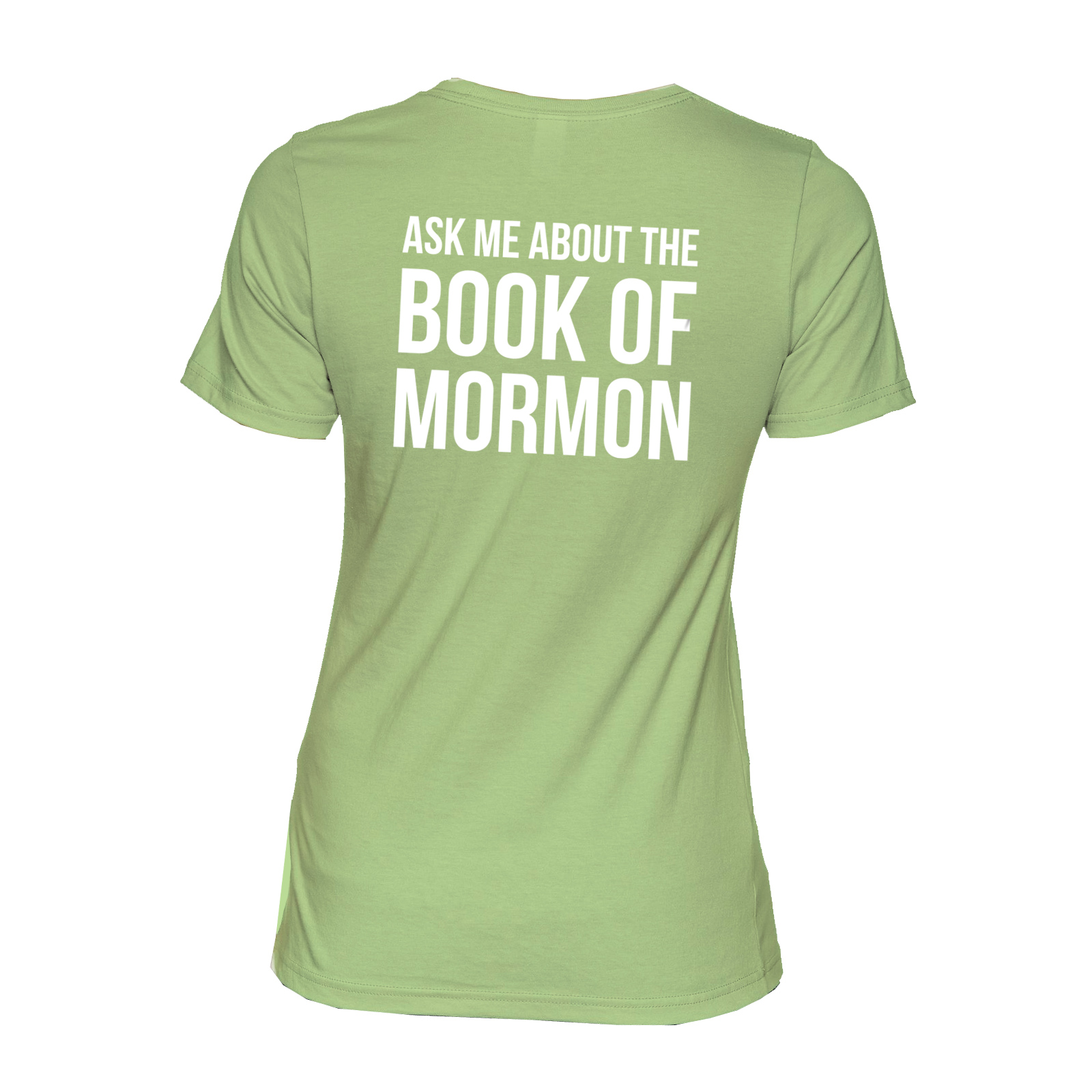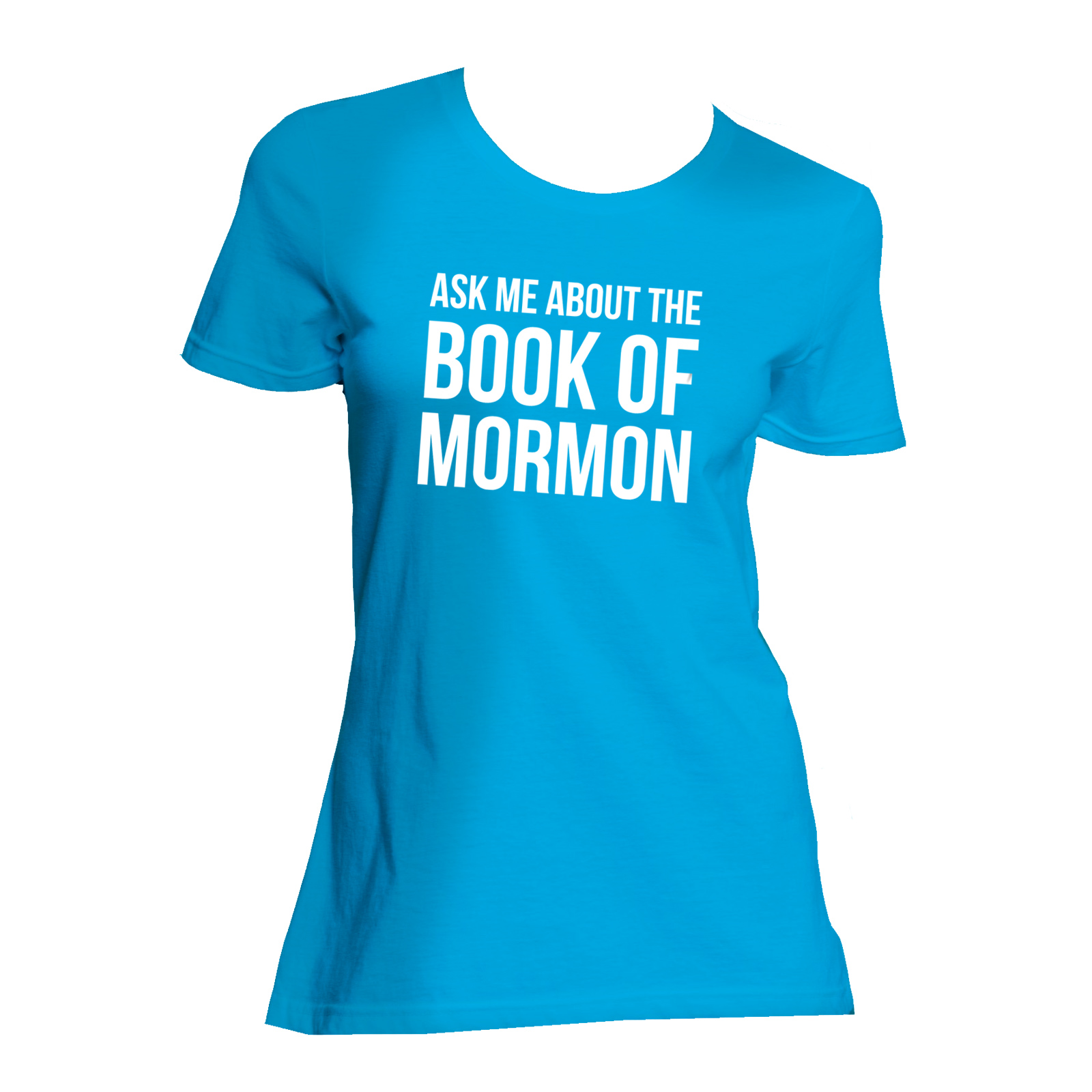 Ask Me about the Book of Mormon Tee Shirt – Women’s fit. Our T-shirt encourages questions about the Book of Mormon with the simple invitation: “Ask me about the Book of Mormon”. You choose if lettering is on the front or back of this shirt. Great for shy missionaries.